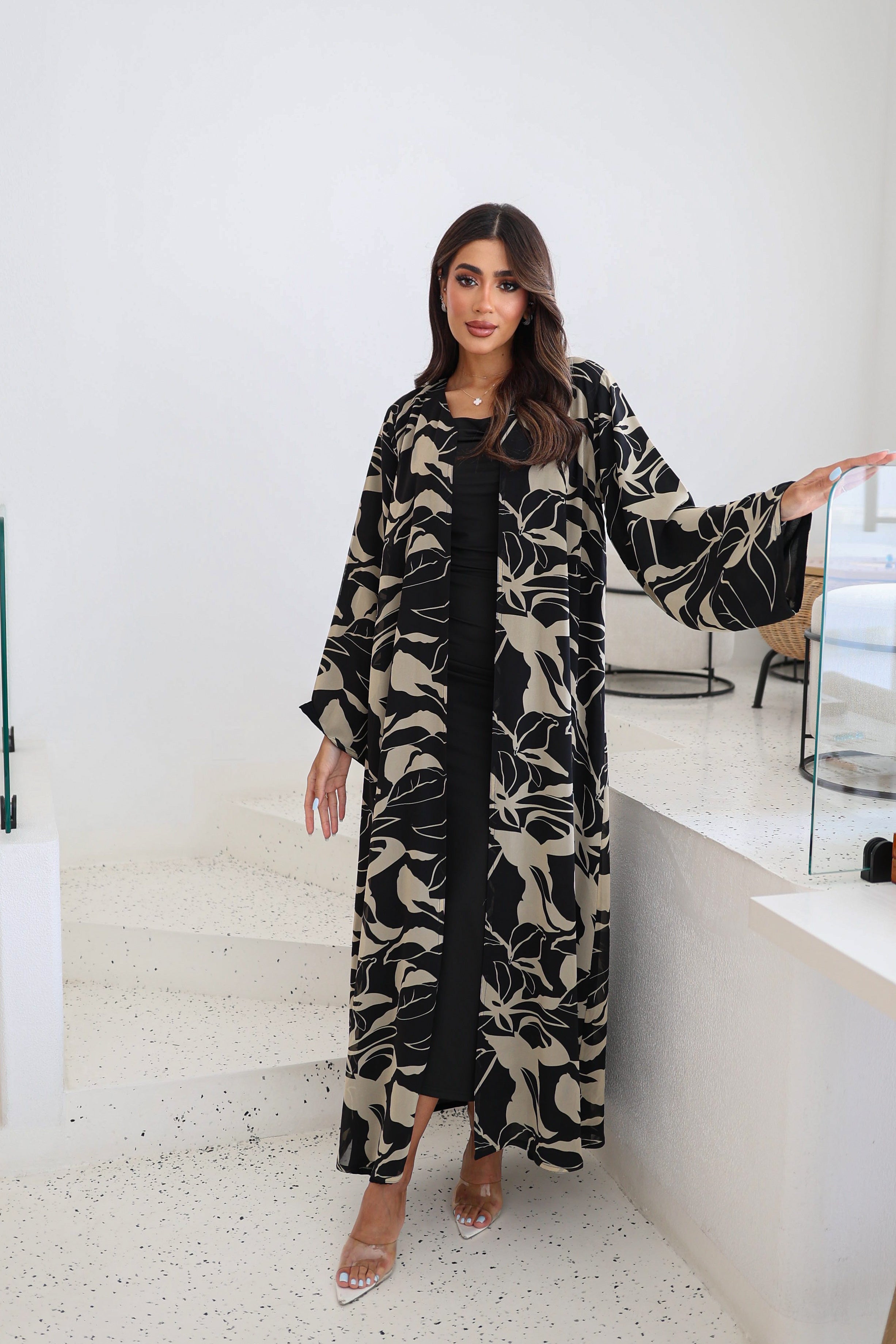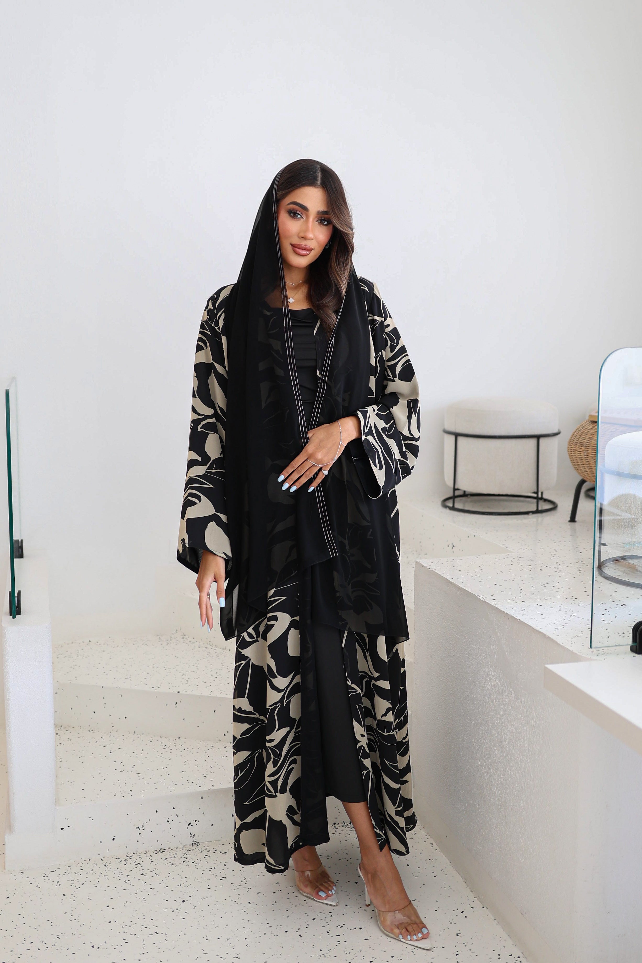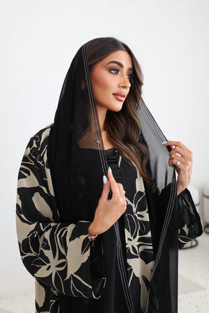 Double chiffon abaya with plain sheila