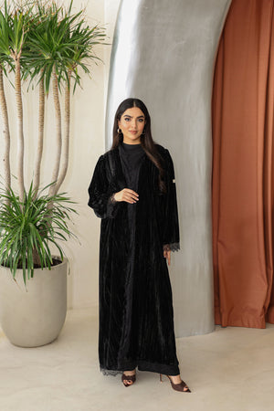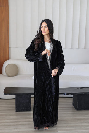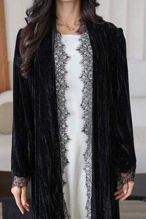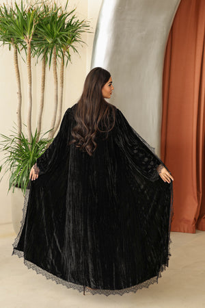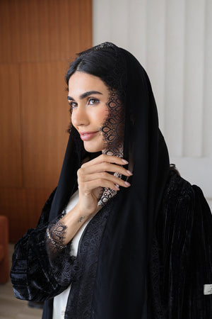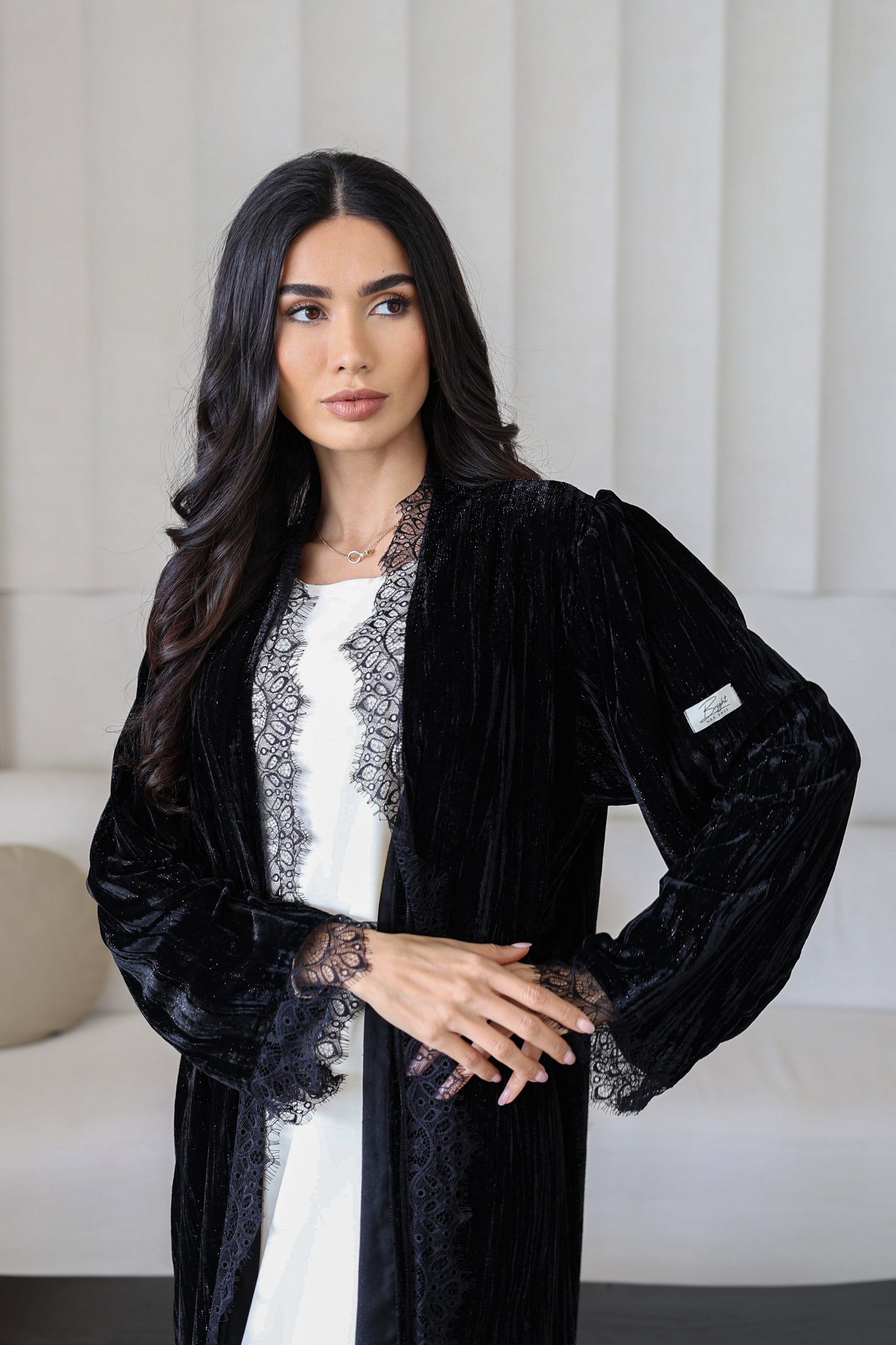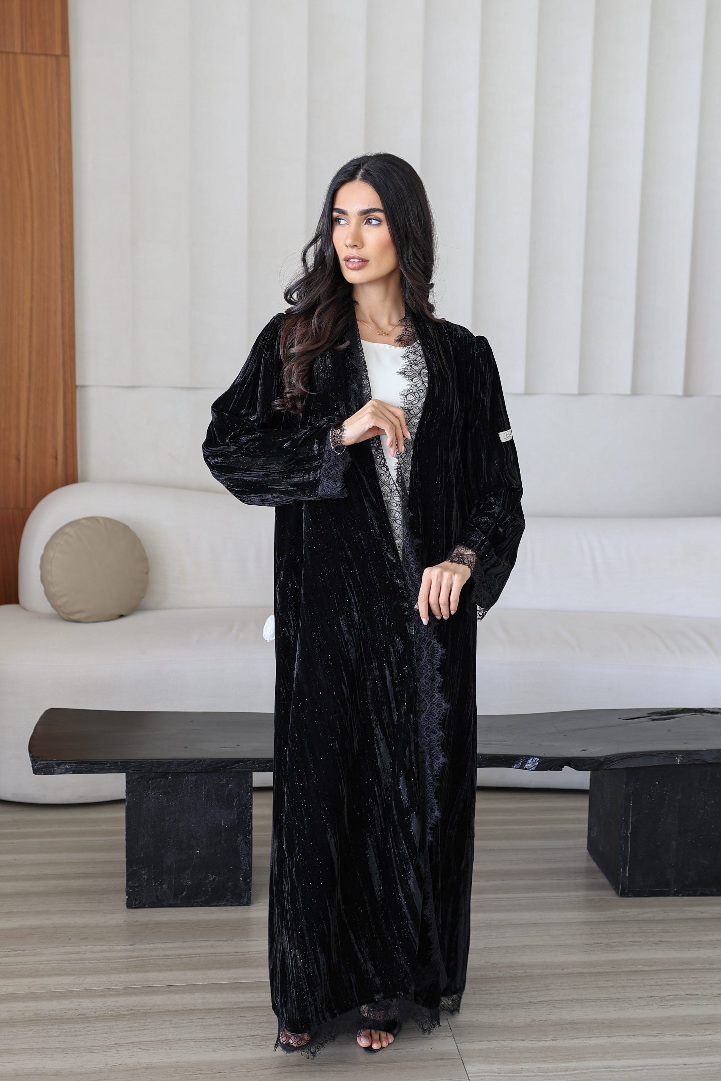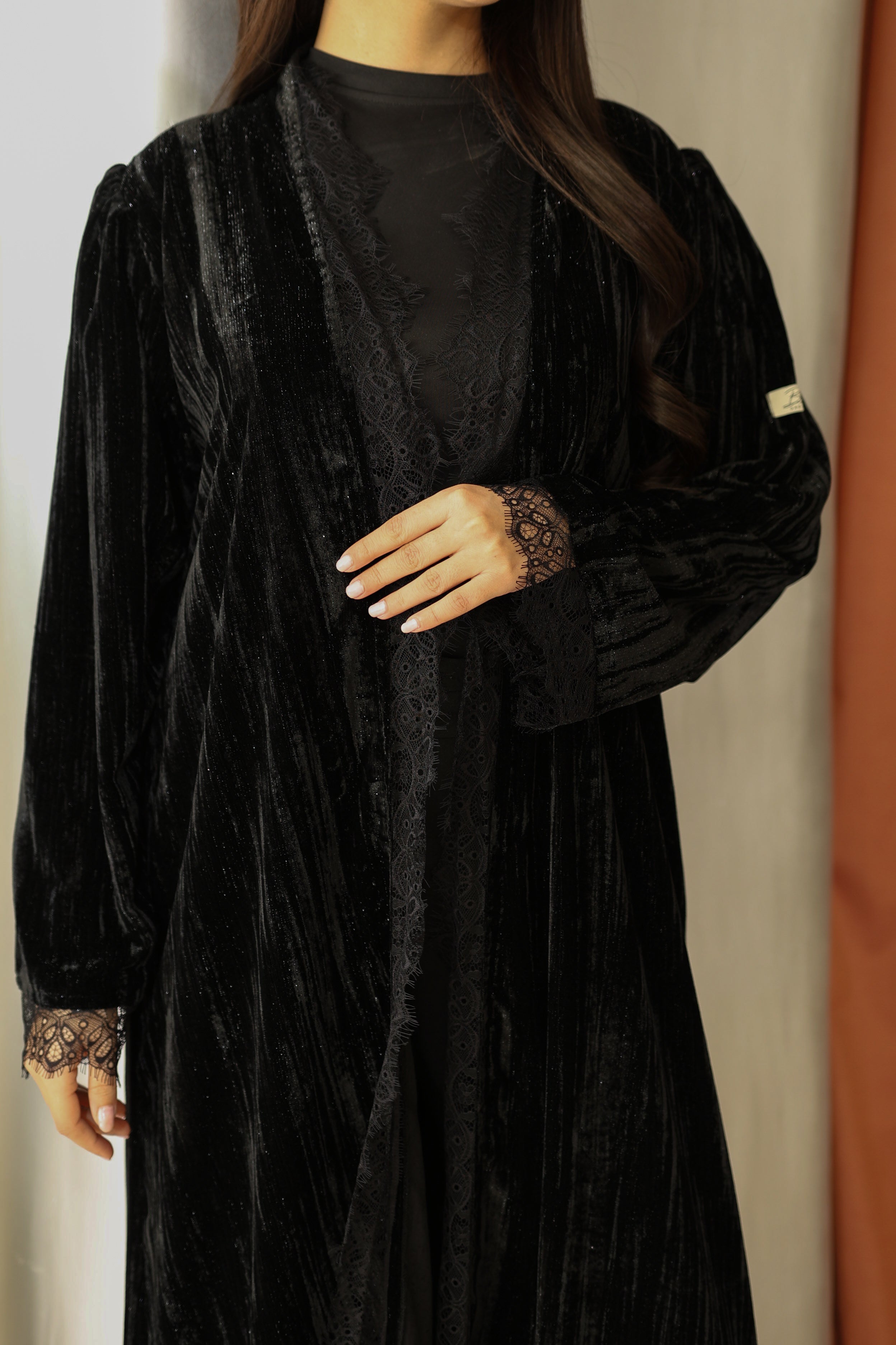 عبايه شتوية مخمل كسرات فيها دانتيل ومع شيلة